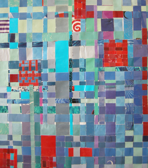 Hopscotch 3, Weavings series, 19.5 x 19.5 cm., 2013. | Return to Collage Menu | Return to Artwork Menu. |
