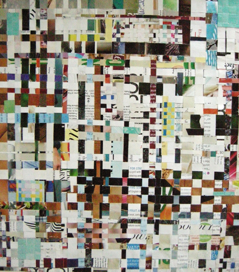 Around Town 1, Weavings series, 31 x 28 cm., 2013. | Return to Collage Menu | Return to Artwork Menu. |