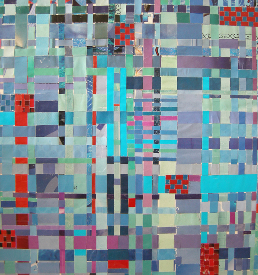 Hopscotch 1, Weavings series, 28.5 x 26.5cm., 2012. | Return to Collage Menu | Return to Artwork Menu. |