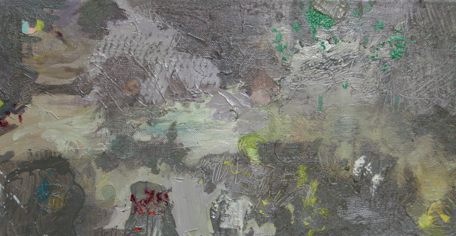 Fireworks on a foggy night, oil on canvas, 17.5 x 31 cm, 2009. | Return to Paintings Menu | Return to Artwork Menu. |