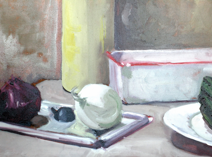 Two onions, oil on canvas, 30.5 x 35.5, 2010. | Return to Paintings Menu | Return to Artwork Menu. |