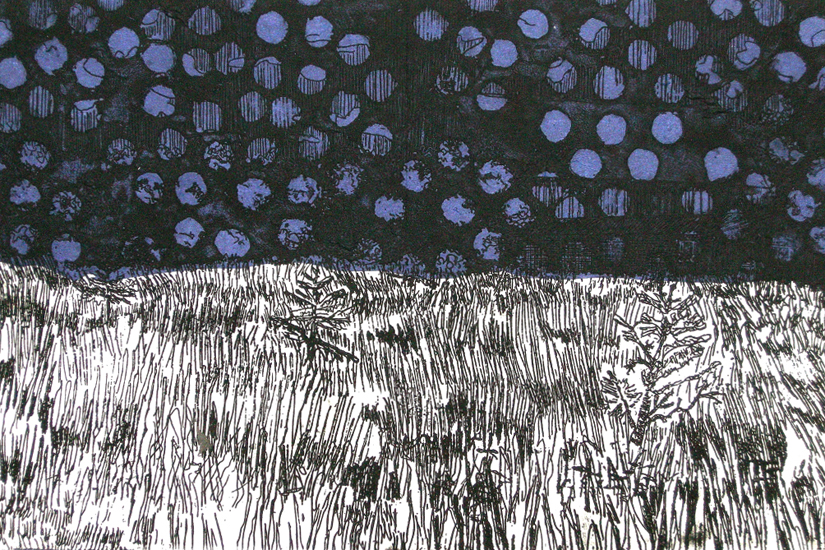 Balloon Meadow, etching with chine collé, 21 x 31 cm, v/e 2/20, 2011. | Return to Prints Menu | Return to Artwork Menu. |