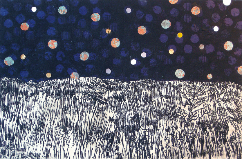 Balloon Meadow, etching with chine collé, 21 x 31 cm, v/e 5/20, 2011. | Return to Prints Menu | Return to Artwork Menu. |