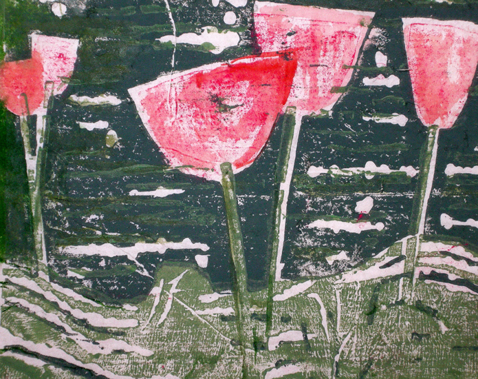 Red Tulips, woodcut, 15 x 20 cm, v/e 1/10, 2011. | Return to Prints Menu | Return to Artwork Menu. |
