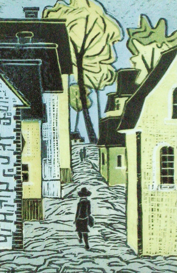 Norwegian Village, reduction linocut, 25 x 16 cm, 2/4, 2011, sold. | Return to Prints Menu | Return to Artwork Menu. |