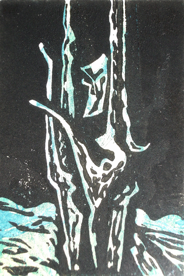 Moon Valley, linocut, 7.5 x 5 cm, v/e 1/20, 2005, sold. | Return to Prints Menu | Return to Artwork Menu. |